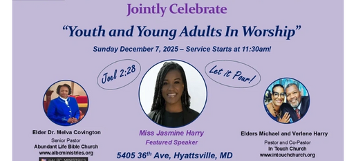 Please continue to tithe and give offering through the Givelify App (look up Abundant Life Bible Church, Hyattsville MD or CashApp - $MelvaCovington).